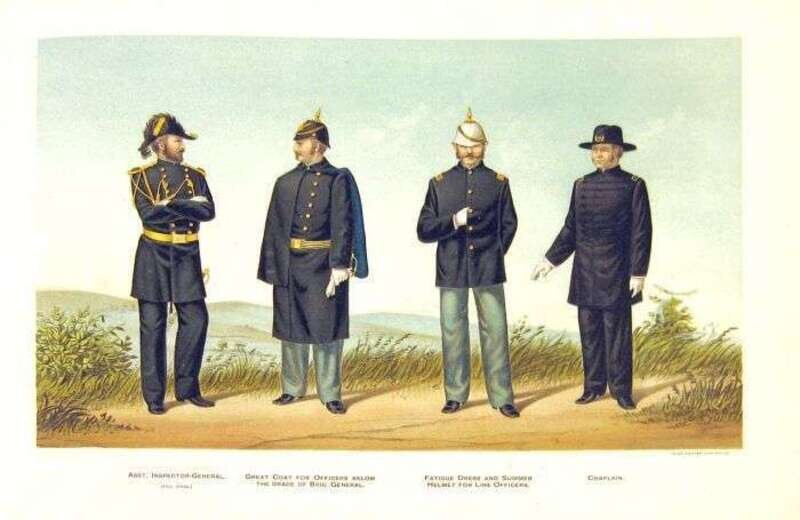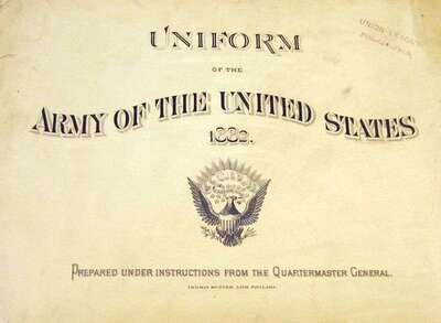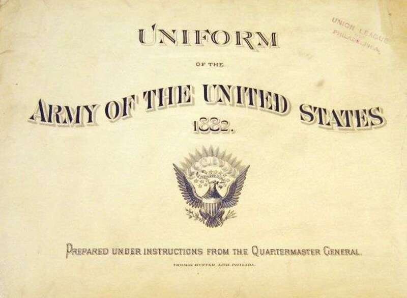 Uniform of The Army of The United States 1882. Philadelphia: Thomas Hunter, [ca. 1882]. Oblong folio, modern morocco-backed cloth. With 10 chromolithographic & 7 plain plates. Title page repaired & slightly dusty, ink library stamp on title & versos of plates. Prepared under instructions from the Quartermaster General.