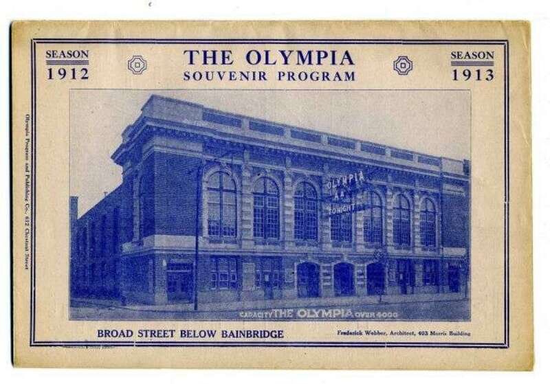 Designed by the Philadelphia architect Frederick Webber & represented as a theater, the Olympia at Broad Street below Bainbridge was nevertheless the first boxing arena built as such in the United States.