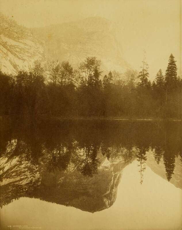 Original 19th-Century Photograph - Mammoth Plate. Jackson, W(illiam) H(enry). "Mirror Lake." Denver, ca. 1880s. Approx. 20 1/2 x 16 1/2 inches (520 x 420 mm). Slightly toned, just a little faded. Signed in plate. Not examined out of late 19th-Century frame.