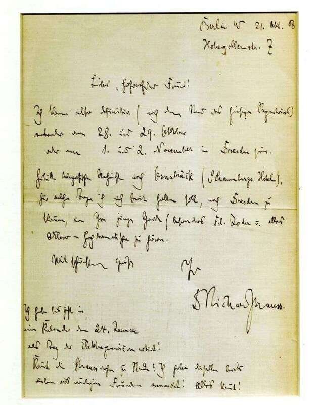 Autograph Letter Signed. Strauss, Richard. Berlin, [?]21, [19]08. 1 p., sm. 4to. Horizontal crease across center.