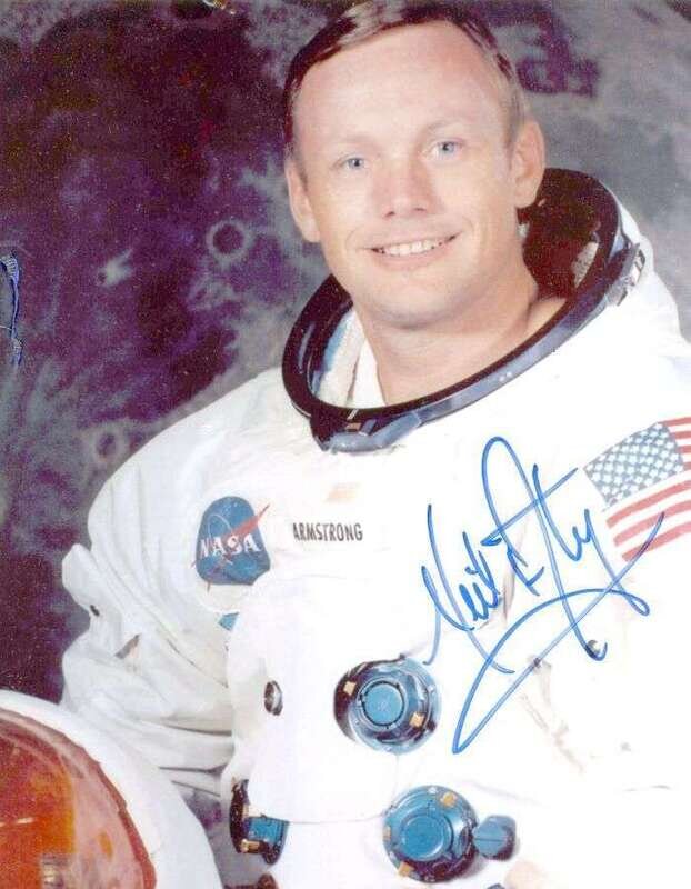 Original Color Photo Signed. Armstrong, Neil. N.p., n.d. 10 x 8 inches (254 x 203 mm). Clean. Bust portrait in space suit. Signed in blue marker.