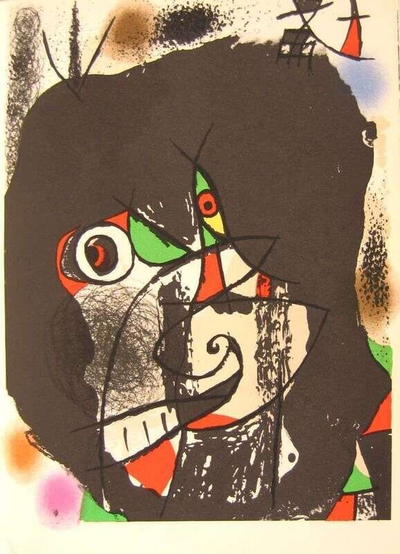 (Miro, Joan.) Bablet, Denis. The Revolutions of Stage Design in The 20th-Century. Paris, New York: Leon Amiel, (1977). Sm. folio, orig. red-lettered black cloth; light edge wear, d/j (some creasing, a few small tears at edges, a few small cello-tape repairs). Color & b/w illus. Internally clean. Includes 2 orig. color lithos by Miro.