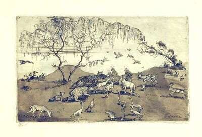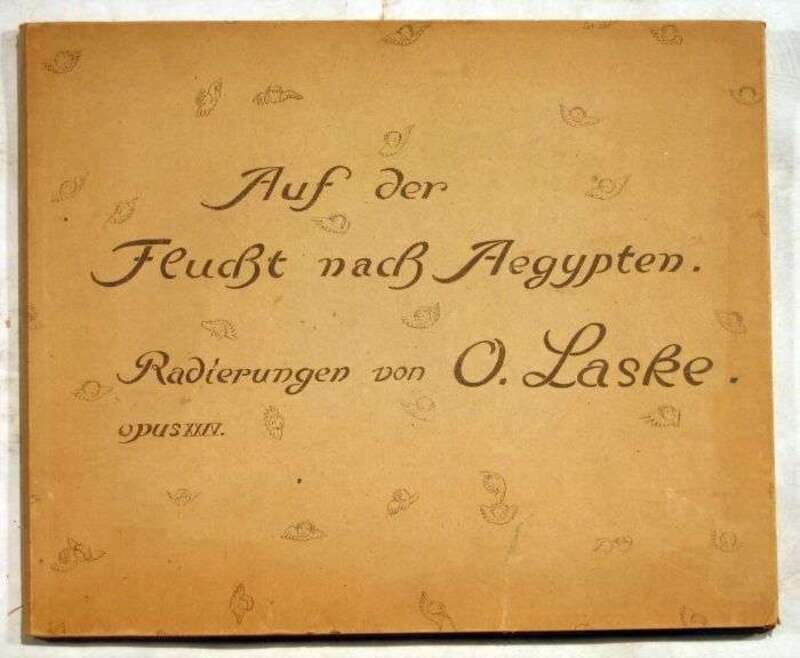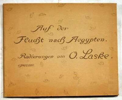 Laske, Oskar. Auf der Flucht nach Aegyten. Vienna, etc.: Rikola Verlag, Verlag Neur Graphik, 1922. 1/100. Folio, orig. bds.; some edge wear, minor discoloration. Title leaf & 8 etched plates. Each plate numbered 0/100 & signed in pencil by the artist. 7 1/2 x 11 1/2 inches (190 x 292 mm) - plate mark; 13 3/4 x 17 1/8 inches (350 x 435 mm) - sheet size. Internally clean.