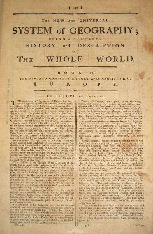 Millar, George Henry. The New and Universal System of Geography. London: for Alex Hogg, n.d. [ca. 1785]. Vol. 2 (of 2) only. Folio, modern buckram, new endpapers. With 17 maps (4 fold.) & 40 plates (views, costume & ethnographic subjects). Light to moderate foxing, offsetting. Includes fold. maps of British North America, South America, West Indies. Also plate depicting Native Americans. Includes account of the American Revolution.