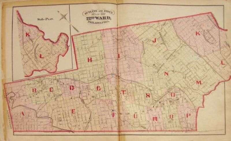 Philadelphia Atlases. Germantown - 22nd Ward: Hopkins, Griffith M. Atlas of (The Late Borough of Germantown), Twenty-Second Ward City of Philadelphia. Philadelphia, 1871. Folio, bdg. gone. With hand-colored outline map + 1-9 (of 13) hand-colored maps. Occasional minor chipping to edges. Le Gear L-3078. * _ _. City Atlas of Philadelphia Vol. 1: 22nd Ward. Philadelphia, 1876. Folio, orig. cloth; bdg. broken & repaired. With hand-colored index map + 19 (of 21) hand-colored maps - lacking maps B & C. Repairs to edges of front matter, occasional chipping to edges. Contents loose. Le Gear L-3081. * Bromley, G.W. Atlas of The City of Philadelphia: 22nd Ward. Philadelphia, 1911. Folio, orig. cloth; bdg. worn & defective. With color index map + 35 color double-page maps - internal dampstaining & chipping. Sold with all faults.