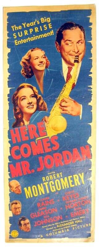 Movie Posters. (American Romantic & Domestic Comedies, ca. 1941-1947): "Appointment for Love." Universal, 1941. Charles Boyer, Margaret Sullivan. With copyright but no code markings. * "Here Comes Mr. Jordan." Columbia, 1941. 2 copies. With copyright but no code markings. * "The Remarkable Andrew." Paramount, 1942. 2 copies. * "Are Husbands Necessary." Paramount, 1942. * "The Magnificent Dope." 20th-Century Fox, 1942. Henry Fonda. With copyright but no code markings. * "Together Again." Columbia, 1944. Irene Dunne, Charles Boyer. With copyright but no code markings. * "Night in Paradise." Universal, 1941. 2 copies. With copyright but no code markings. * "The Affairs of Susan." Paramount, 1945. * "Claudia and David." 20th-Century Fox, 1946. With copyright but no code markings. * "One More Tomorrow." Warner Bros., 1946. * "Two Guys From Milwaukee." Warner Bros., 1946. * "Merton of The Movies." MGM, 1947. * "Navy Blue and Gold." MGM, [1937]. Re-release.