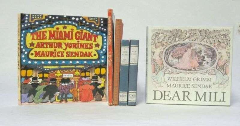 Illustrated Children's Books: Bemelmans, Ludwig. The Golden Basket. New York: Viking, 1936. 1st ed. 4to, orig. cloth; moderate wear, slightly dusty. Color illus. * Seuss, Dr. Happy Birthday To You! New York: Random House, 1959. 1st ed. 4to, orig. color pictorial bds.; moderate edge wear, d/j (some creasing, a few small chips at edges). Color illus. throughout. Younger & Hirsch 28.* (Sendak, Maurice, illustrator.) Grimm, Wilhelm. Dear Mili. New York: Farrar, Straus And Giroux, (1988). 1st ed. thus. Oblong 4to, orig. cloth, d/j (price clipped). Color illus. Bright copy. * (_ _.) Opie, Iona & Peter, eds. I Saw Esau. Cambridge: Candlewick, (1992). 1st Am. ed. 12mo, orig. bds., d/j. Color illus. 2 copies - both Near Fine. * (_ _.) Yorkins, Arthur. The Miami Giant. N.p.: Harper Collins, (1995). 1st ed. 4to, orig. color pictorial bds., color illus. Bright, tight copy.