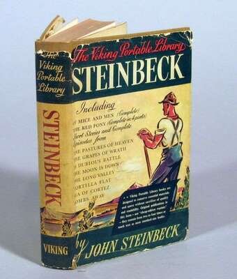 Steinbeck, (John). The Viking Portable Library. Steinbeck. New York: The Viking Press, (1948). First edition. Edited by Pascal Covici. 12mo, orig. red-stamped pictorial cloth; light edge wear, d/j (some chipping - primarily to edges - slightly dusty). Signed by John Steinbeck on front free endpaper recto. Former owner's ink presentation on 1/2 title.