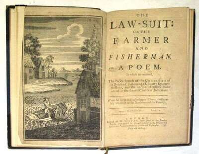 (Barber, James.) The Law-Suit: or, The Farmer and Fisherman. A Poem. London: for G. Spavan, 1738. First edition. 8vo, 19th-Century 3/4 blue morocco & cloth, gilt; joints, spine ends & extremities rubbed. Frontis. 1 p. adverts. at back. Some minor internal darkening, upper fore-edge of frontis. chipped. Trimmed - heads shaved close.