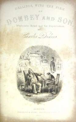 Dickens, Charles: Dombey and Son. London: Bradbury & Evans, 1848. First edition in book form. Illus. by H.K. Browne. 8vo, contemp. 1/2 tan calf & marbled bds., green morocco spine label; rubbed. With 40 plates, incl. frontis. & additional vignette title. Edges of plates darkened, plates often foxed, scattered light to moderate foxing to text. * David Copperfield. London: Bradbury & Evans, 1850. First edition in book form. 8vo, contemp. 1/2 green calf & marbled bds., morocco spine label; worn & rubbed, front cover detached. With 40 plates, incl. frontis. & additional vignette title. Plates often heavily foxed. Punch hole approx. 1/2 inch in diameter in center of pp. 353-384. Sold with all faults.
