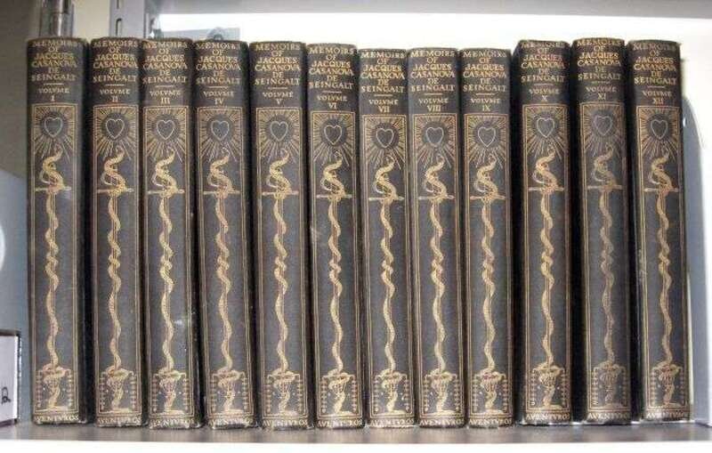 (Kent, Rockwell, illustrator.) Casanova de Seingalt, Giacomo Girolamo. The Memoirs of... Aventuros, 1925. #336/1000. Translated by Arthur Machen. 8vo, orig. black cloth, gilt-lettered & decorated spines, t.e.g.; occasionally slightly scuffed, spine ends & corners slightly frayed. Frontispieces, lettered tissue guards. Internally clean.