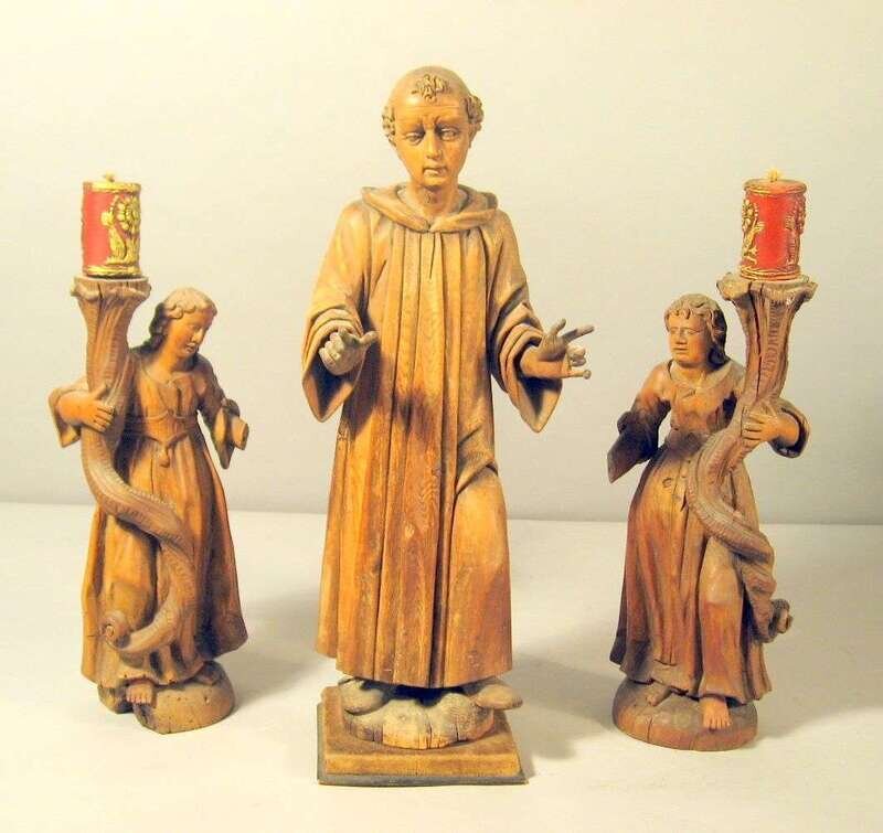 Comprising a standing figure of a monk and a pair of saints holding candles. (3).