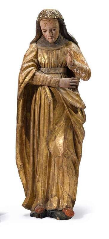 Northern European carved, polychrome and gilt figure of a female saint 18th/19th century