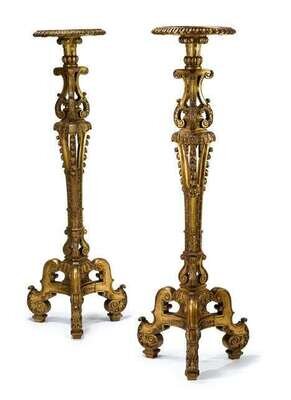 Pair of Continental carved giltwood torchere stands late 19th century