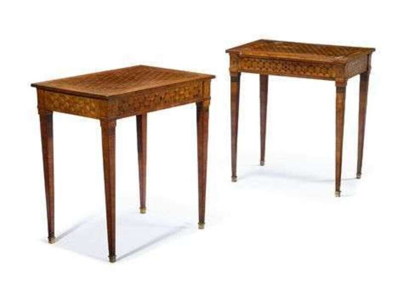 Pair of Italian walnut and fruitwood parquetry side tables 18th century
