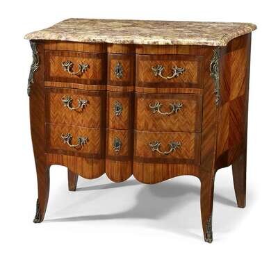 Louis XV style kingwood and tulipwood parquetry marble top commode late 19th century