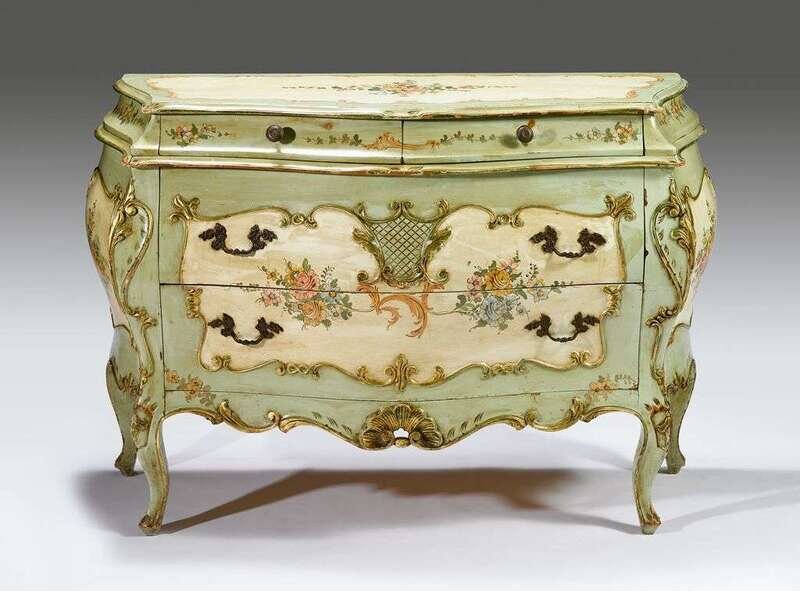 Rococo style green painted bombe commode