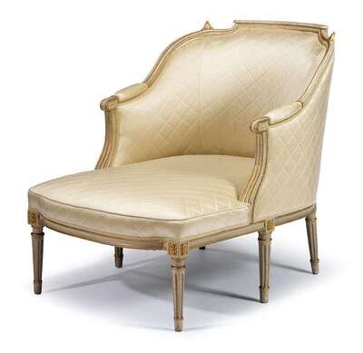 Louis XVI style painted and parcel gilt duchess brisee early 20th century