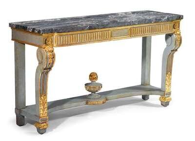 Louis XVI style painted and parcel gilt marble top console part 19th century