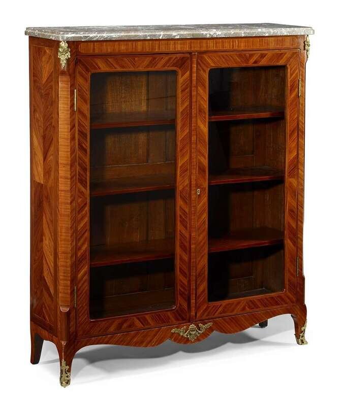 Louis XVI style tulipwood inlaid and gilt bronze mounted bibliotheque early 20th century