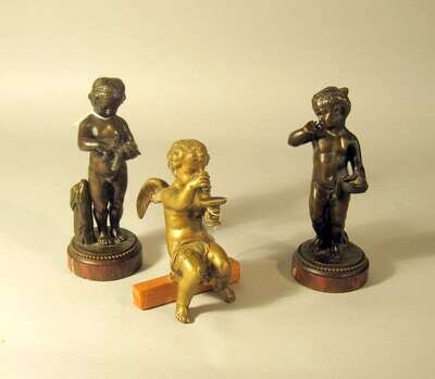 Three Continental bronze figures of putti