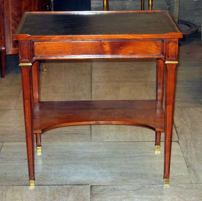 French fruitwood and brass mounted work table