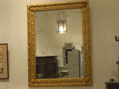 With a rectangular mirror plate enclosed by Greek Key designs.