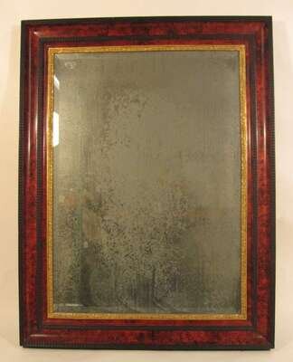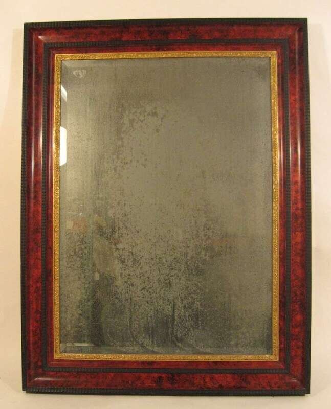 Each with a rectangular mirror plate enclosed by a gilt beading and a wide faux-painted border and ebonized frame. (2).