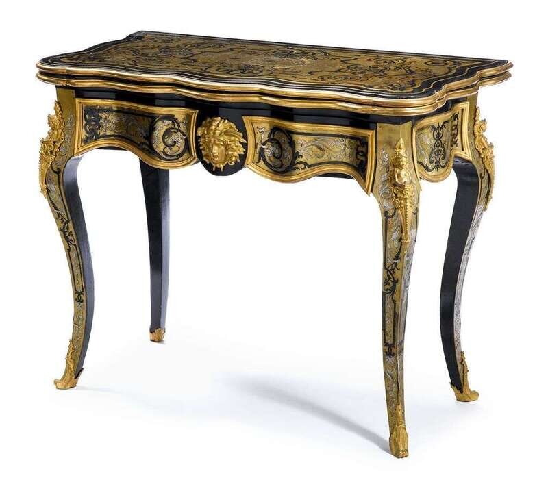 Napoleon III gilt bronze mounted boulle marquetry ebonized games table late 19th century