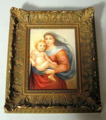 Rectangular, depicting Madonna and Christ, in a giltwood frame.
