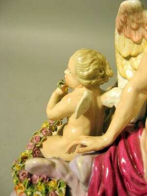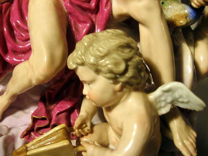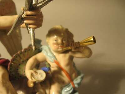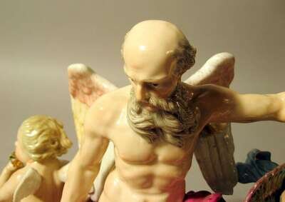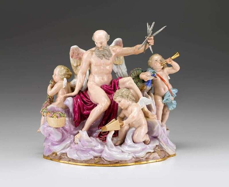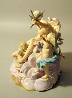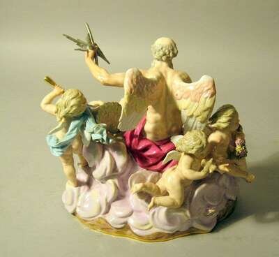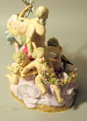 Depicting Aeolus attended by putti representing the winds, model D.82 57, underglaze blue crossed swords mark.