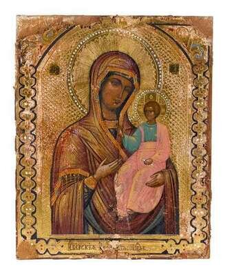 Russian gilt and polychrome icon, 'Lady of Kazan' late 18th century