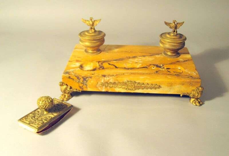 Neoclassical style marble and gilt bronze inkstand 19th century, possibly russian