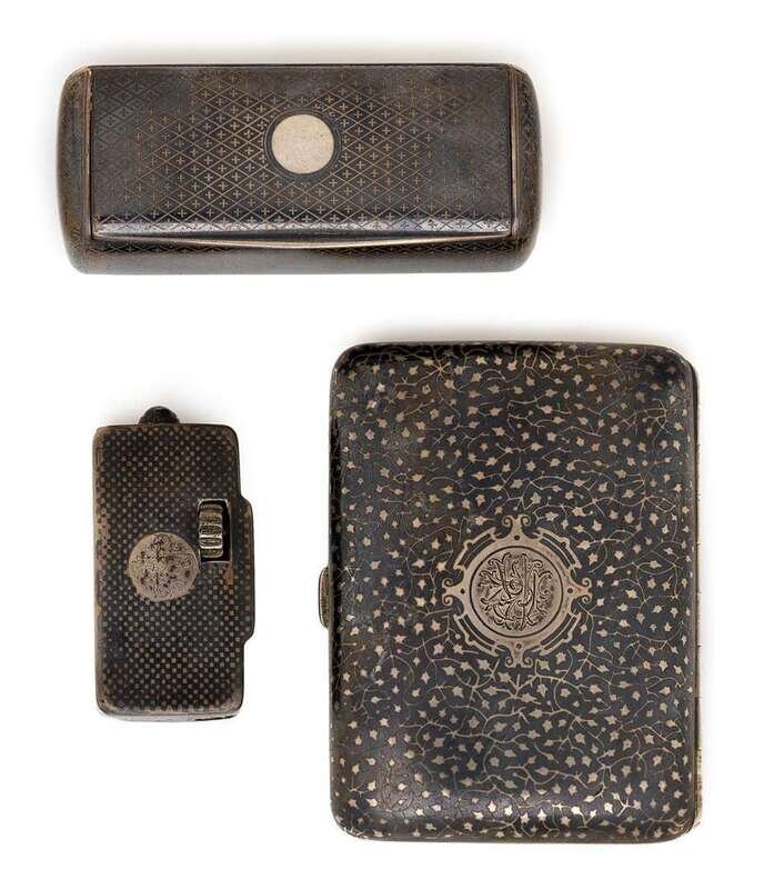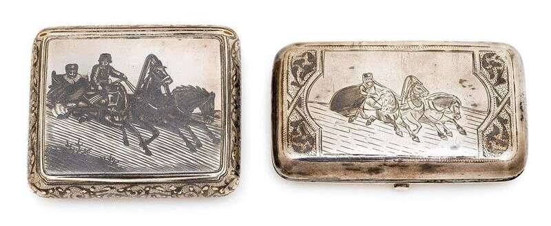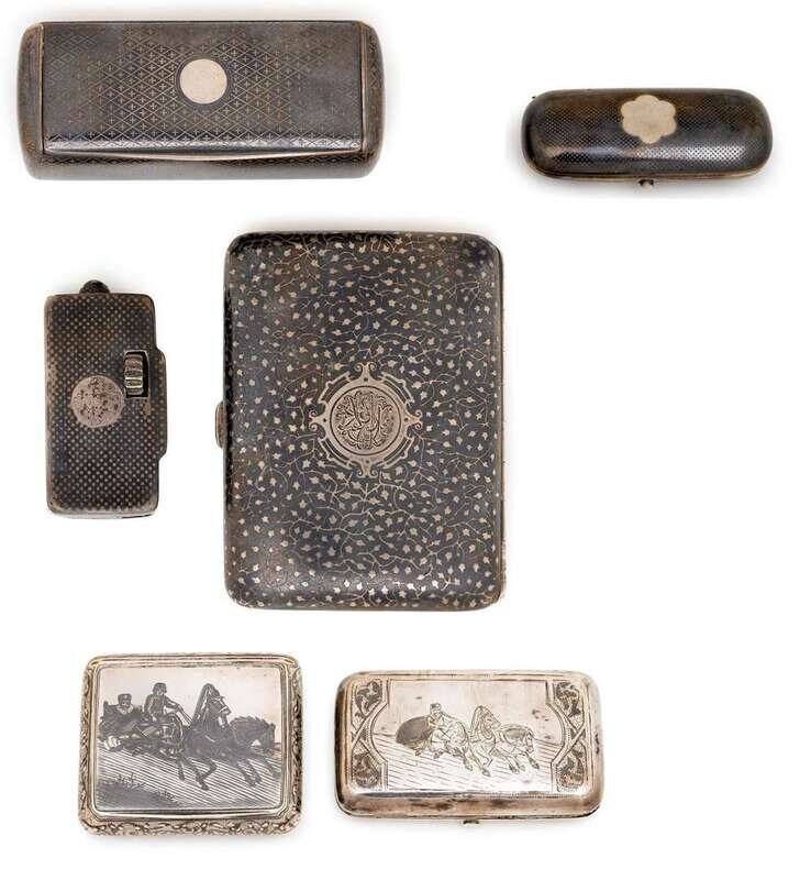 Six Russian silver and niello cases various makers