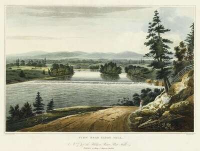 Hand-Colored Aquatint Etching. Hill, John after Wall, William Guy. "View Near Sandy Hill." New York: H.I. Megarey, [1825-26]. [Plate #7, Hudson River Portfolio.] 18 1/2 x 26 inches (470 x 660 mm); image size 14 x 21 inches (356 x 533 mm). With text leaf at back of frame.