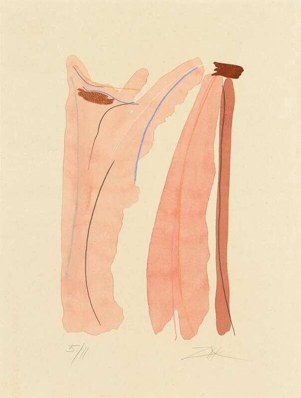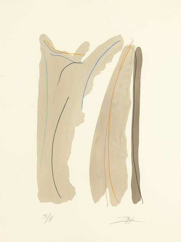 THREE COLOR POCHOIRSLARRY ZOX (AMERICAN 1936-2006) UNTITLED (YELLOW)andUNTITLED (GRAY)andUNTITLED (RED)