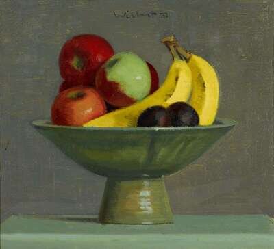 ROBERT WILBERT (AMERICAN B. 1929) COMPOTE WITH FRUIT ON GREY