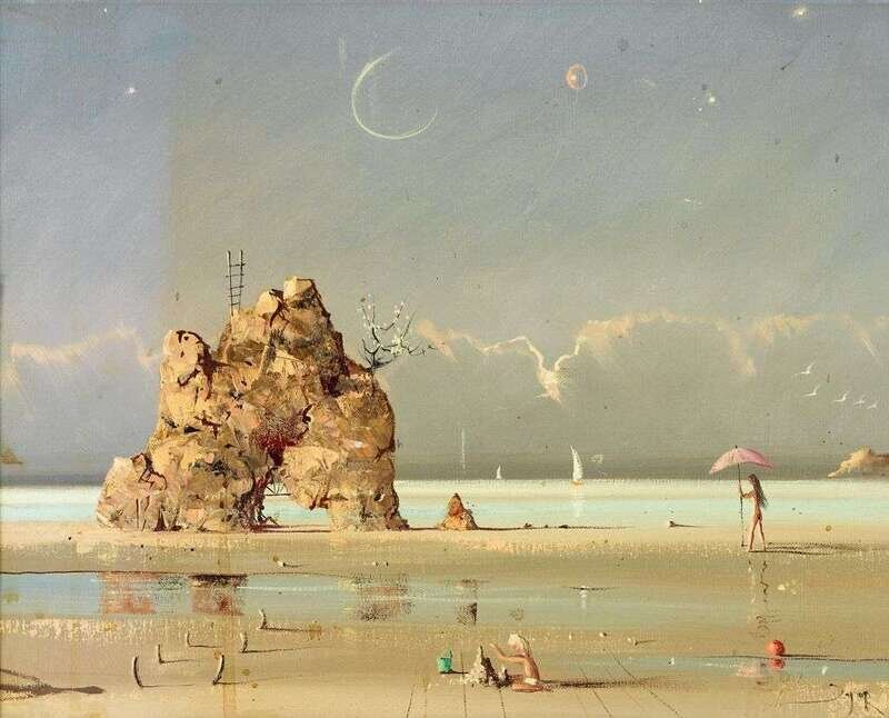 IGOR PANTUHOFF (AMERICAN 1911-1972) SURREALIST BEACH SCENE