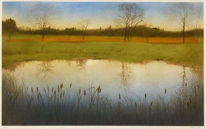 FOUR PRINTSHARVEY KIDDERANDREW RICESCOTT ANTHONYGAUTAM JOHN MAXON (AMERICAN B. 1918)(AMERICAN 20TH CENTURY)(AMERICAN 20TH CENTURY)(AMERICAN b. 1947) "STILLMAN'S POND""ABOVE THE SEA"TOWN FROM WATER'S EDGE"STEPPE INTO"