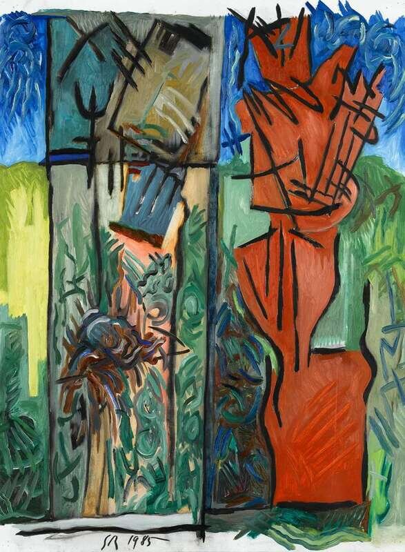 Initialed and dated 'SR 1985' bottom center, oil on paper