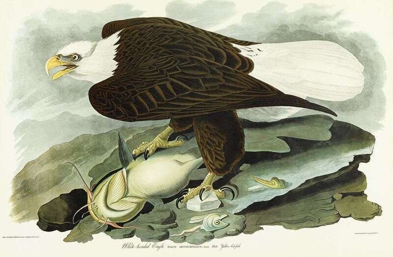 Audubon, John James: "White-Headed Eagle." * Smew or White Nun." * "Pin Tailed Duck." * "Hairy Woodpecker." * "Great Crested Grebe." * "Goshawk or Stanley Hawk." * " Brasillian Caracara Eagle." * "Night Heron." * "Booby Gannet." * "Gannet." * "Black-Bellied Darter." * "Broad-Winged Hawk." * "Meadow Lark." (The Birds of America.) Amsterdam, 1971-1972. 1/250. All color prints, 26 1/2 x 39 1/2 inches (673 x 1003 mm). All clean & bright.R>