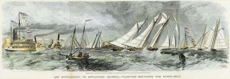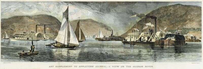 Hand-Colored Engravings: "A View on The Hudson River." * "Yachting - Rounding The Stake Boat." New York, 1869. Appleton's Journal Art Supplements, both after A.R. Ward. Both approx. 10 x 28 inches (254 x 710 mm). Minor creasing. Clean.