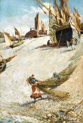 WALTER FRANCIS BROWN (AMERICAN 1853-1929) HAULING THE NETS