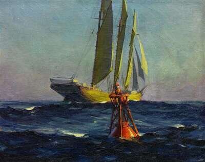AMERICAN SCHOOL (EARLY 20TH CENTURY) SAILBOAT NEAR CHANNEL MARKER