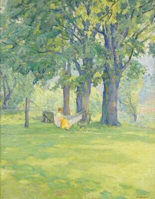 G.L. NELSON (AMERICAN 1887-1978) WOMAN READING ON HAMMOCK