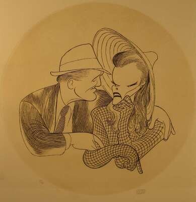 ALBERT HIRSCHFELD (AMERICAN 1903-2003) "WOMAN OF THE YEAR, KATHERINE HEPBURN AND SPENCER TRACY"