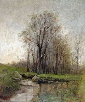 TWO PAINTINGSTHOMAS BANCROFT (AMERICAN 19TH CENTURY) "SPRING N. BROAD ST. PHILADELPHIA"