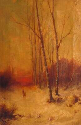 T. WOOD (19TH CENTURY) BIRCH GROVE AT SUNSET
