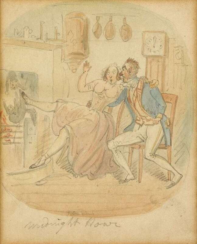 TWO WATERCOLORS FRAMED TOGETHERROBERT ISAAC CRUICKSHANK (BRITISH 1789-1856) "ALL'S WELL THAT ENDS WELL"