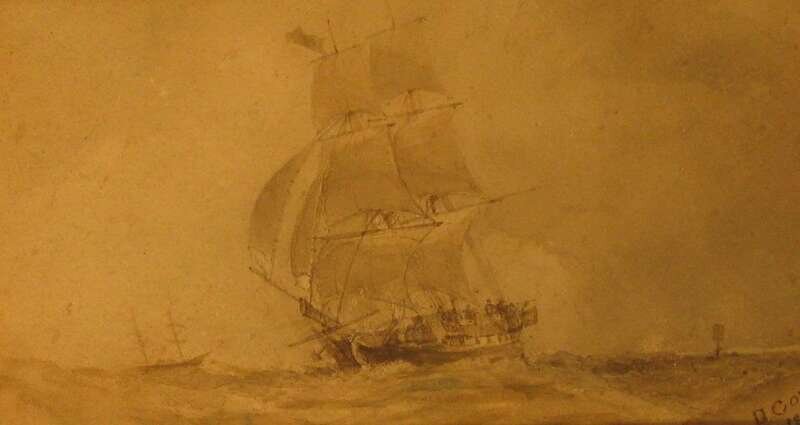 Signed and dated 1835 bottom right corner, ink and ink wash on paper